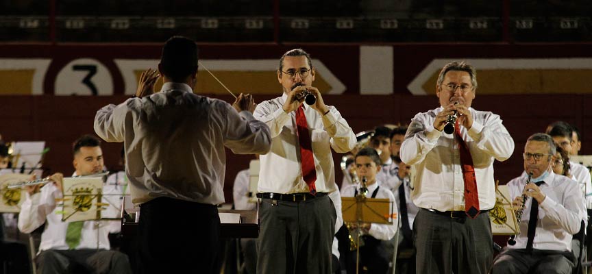 La Banda accedió al ruedo al son del pasacalles ‘No lo olvido’ para después ocupar sus asientos. La cuellarana Conchi Sanz actuó como presentadora y coló sus versos entre el repertorio musical. Un repertorio que abrió el pasodoble ‘Traner’ del valenciano Rafael Talens, y en el que Mario Díaz mostró su talento con un solo de flautín. Le siguió ‘Coldplay in symphony’con grandes éxitos de la banda británica de rock Coldplay como ‘A Sky full of stars’, ‘Clocks’, ‘The Scientist’ y ‘Viva la vida’, una pieza esta con la que Sanz quiso recordar a los que han perdido la vida a causa de la pandemia. Continuaron con pasodobles como ‘Torre del Oro’ o ‘La Gracia de Dios’, temas clásicos del rock, la versión samba del tema ‘Caravan’ de Duke Ellington y ‘Three Klezmer miniatures’, música judía interpretada desde el siglo XVI por trovadores de la Europa del Este en celebraciones de diversa índole.