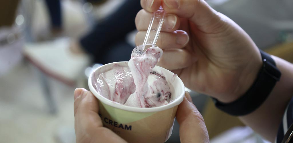 El proceso se ha detallado desde cero. Desde la pasteurización de la leche, pasando por la incorporación de los ingredientes sólidos hasta llegar al mantecado final que evita que el helado cristalice. El resultado es un helado cremoso que se presenta a una temperatura de -5 grados, tal y como los asistentes han podido degustarlo.