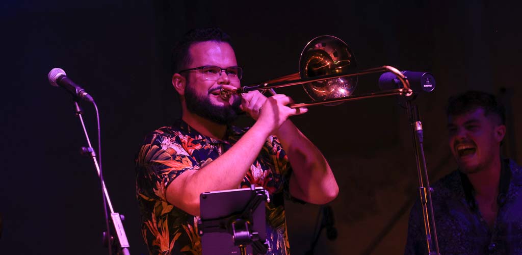 Junto a Zarzuela, que tocó la trompeta y el trombón, se subieron al escenario Pablo Hernández con su saxo alto, Adrián Buenaga y su saxo tenor, Sergio Arconada a la guitarra, Maite Arregui al piano, Nicolás Alvear al bajo y Daniel Pimenta a la batería.