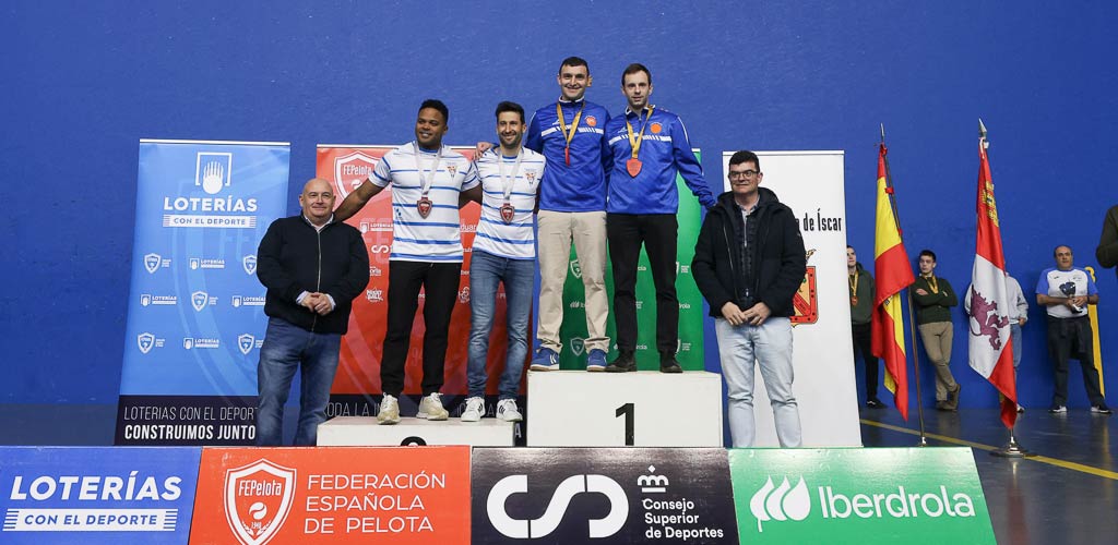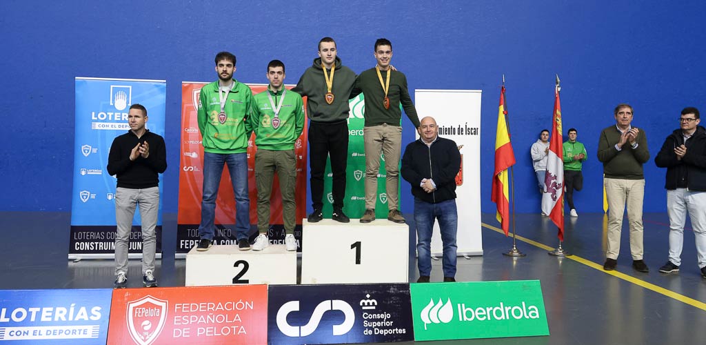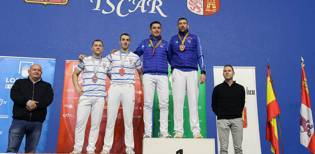 El frontón de Íscar (Valladolid) vivió una jornada muy especial de pelota el pasado fin de semana. Allí se disputaron las finales de la División de Honor del Campeonato de España de Clubes, tanto en las especialidades de Mano como de Herramienta, en la modalidad de Frontón 36 metros. Y en ese escenario el pelotari de Vallelado, Carlos Baeza, se subió de nuevo a lo más alto del podio junto a su compañero Imanol Ibáñez. El frontón iscariense, sede del Club Pelota Puertas Bamar, se llenó para presenciar las cuatro finales y el triunfo del club local.