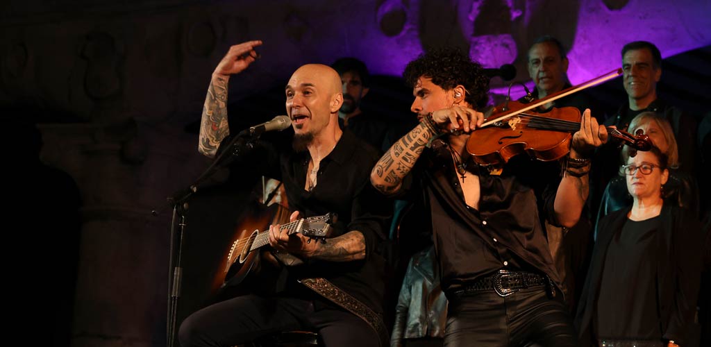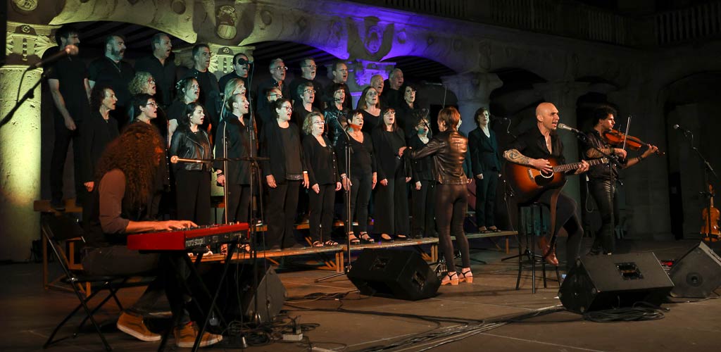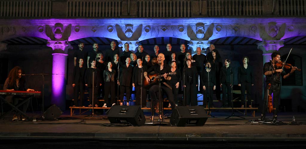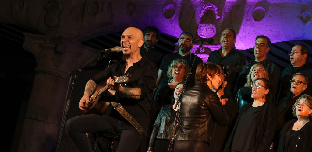 La parte final, la más esperada, contó con la colaboración de la Coral Cuellarana, que como ya hizo en la anterior participación del cantante en Así Cantan las Corales, le acompañó en media docena de canciones que cosecharon las ovaciones del público. Juntos entonaron piezas como ‘Arrepentido’, ‘Paraíso’ o ‘Náufrago’