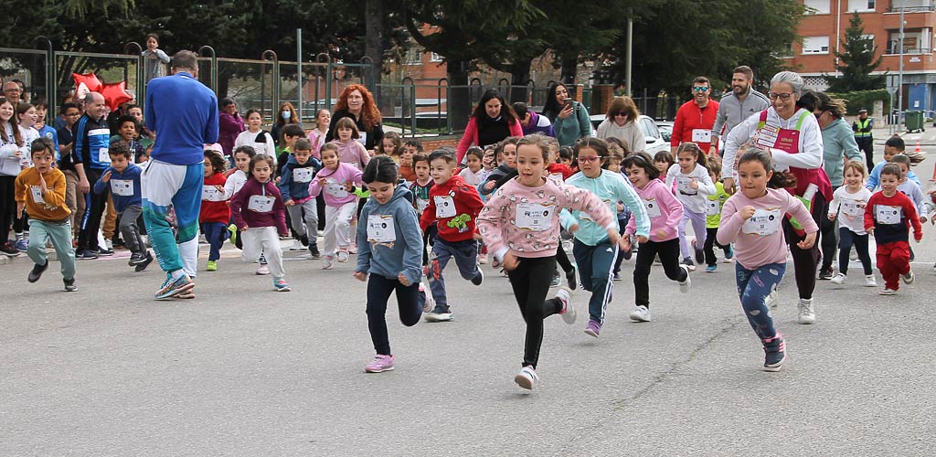 Todos los alumnos del centro y sus profesores han participado en esta carrera solidaria por el entorno del centro que ha comenzado con los más mayores de cuarto, quinto y sexto de primaria, les han seguido los de primero, segundo y tercero y finalmente han corrido los alumnos de Educación Infantil.