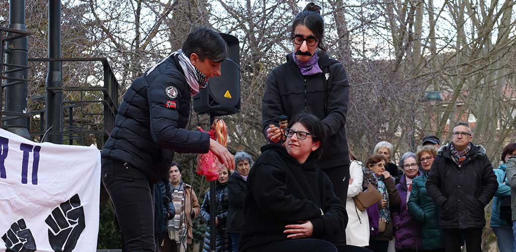 Seguidamente, tres integrantes del taller de creación escénica han escenificado algunos de los conceptos y etiquetas que nombran situaciones de desigualdad entre hombres y mujeres.