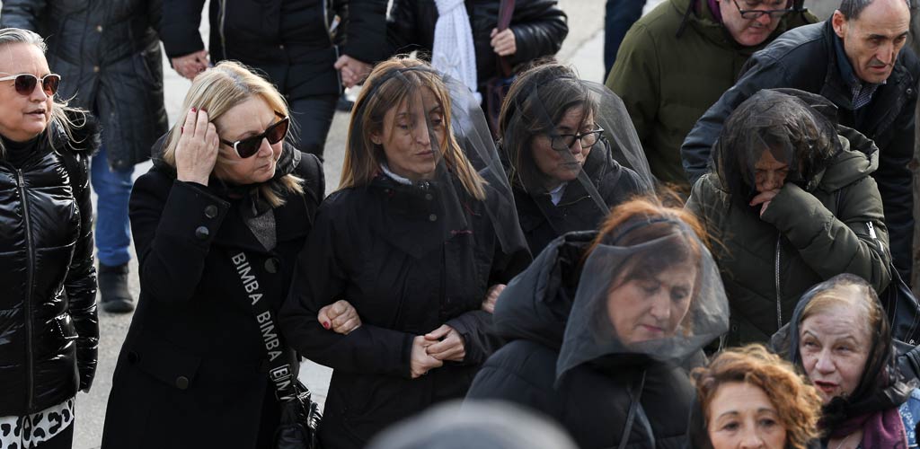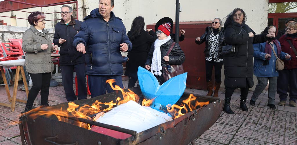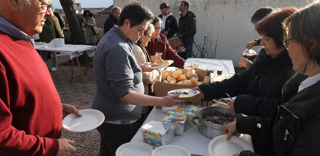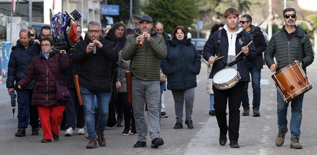 El cortejo fúnebre ha partido del Centro de Día con la sardina portada en andas por usuarios de Fundación Personas, precedido por la música del grupo de dulzaineros Quemadal. En el séquito, mujeres con la cabeza cubierta por un velo negro y pañuelo en mano han hecho las veces de plañideras, llorando el fin de la fiesta de carnaval escenificado con el entierro de la sardina.