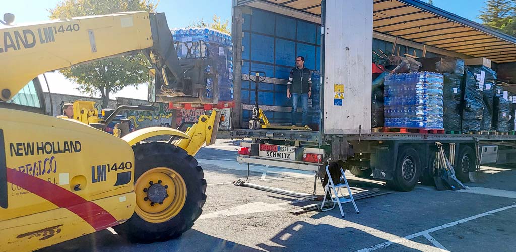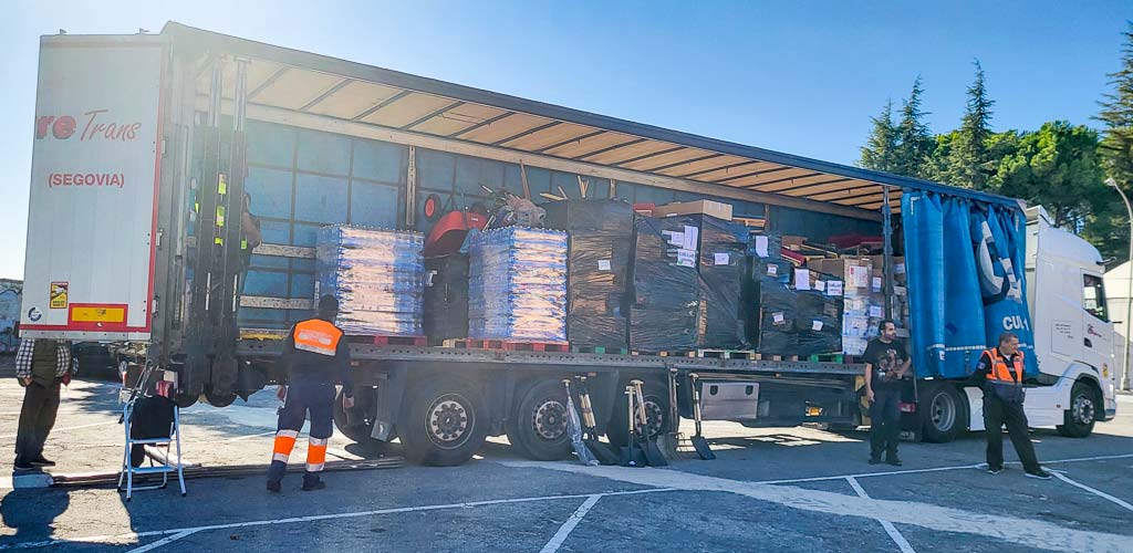 Al envío de productos desde Cuéllar se suma el realizado por Transportes Silve desde Fresneda de Cuéllar que ya ha llegado a su destino, la localidad de Algemesí, el transportado por Granalu con lo recogido en Sanchonuño y el que partirá desde Gomezserracín.