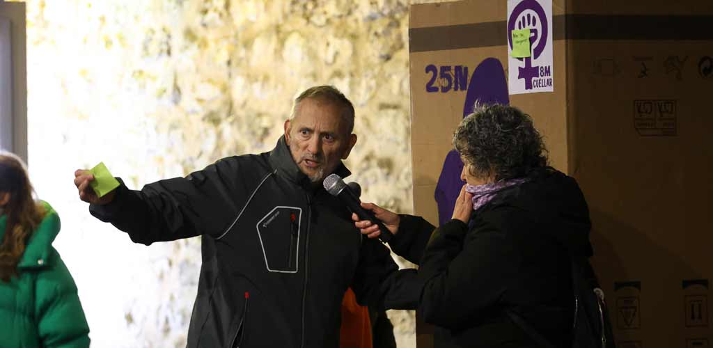 Tras la representación tomó la palabra el alcalde de Cuéllar, Carlos Fraile. Recordó que por segundo año consecutivo la localidad había vivido la consternación por la agresión de un avecina a manos de su expareja. Fraile destacó que el sistema VioGén tiene asignados a la Policía Local de Cuéllar nueve casos. Uno de riesgo extremo, otro de riesgo alto y siete más de riesgo bajo. «Detrás de estas cifras hay vecinas que son víctimas de esta violencia que en este año contabiliza 38 mujeres asesinadas y ya son más de 1 300 desde el año 2003 en nuestro país».