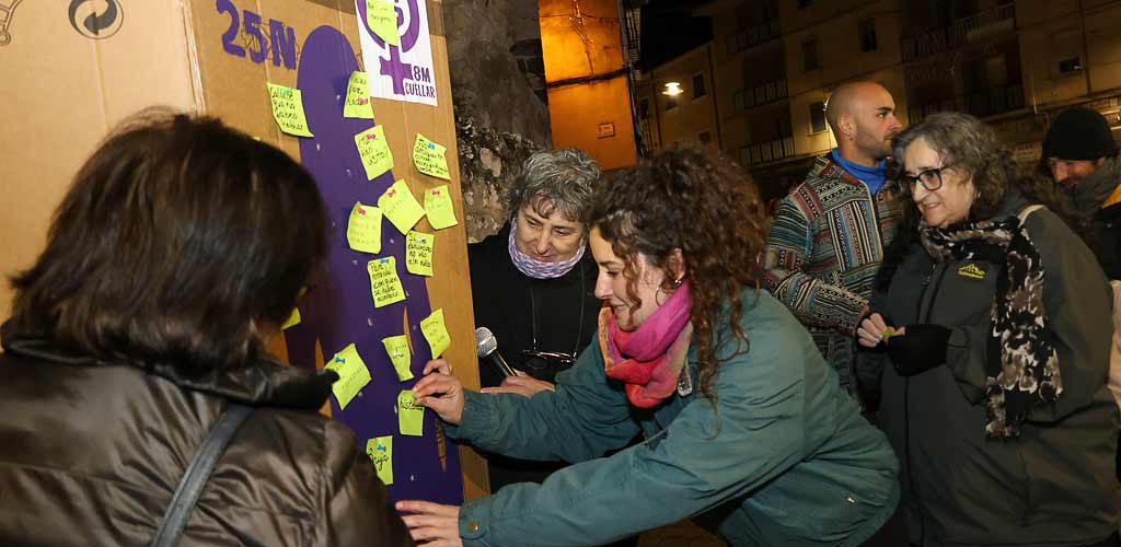 La plaza de los Coches volvió a ser el punto de encuentro para conmemorar en Cuéllar el 25N, Día Internacional de la Eliminación de la Violencia contra la Mujer. Allí, con el lema «Ni golpes que duelan ni palabras que hieran», el Colectivo 8M dio lectura a un manifiesto y escenificó la violencia, física, psicológica, sexual o económica, que se ejerce diariamente contra muchas mujeres.