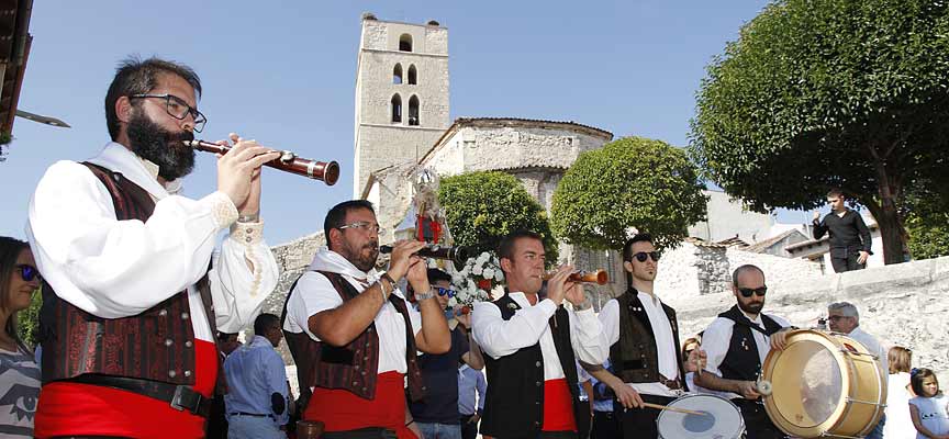 Al son de la dulzaina y el tamboril del grupo Tierra Antigua la procesión ha recorrido las calles del barrio, acompañada por autoridades municipales y eclesiásticas y la reina de las fiestas, Beatriz Nieto, y su mayordomo Álvaro Velasco. Los hermanos de la cofradía se han ido turnando para portar la imagen de la virgen a la que el barrio profesa gran devoción. Tierra Antigua ha interpretado durante la procesión la danza dedicada a la virgen de la Palma y al barrio de El Salvador, una pieza creada por Javier Pilar.