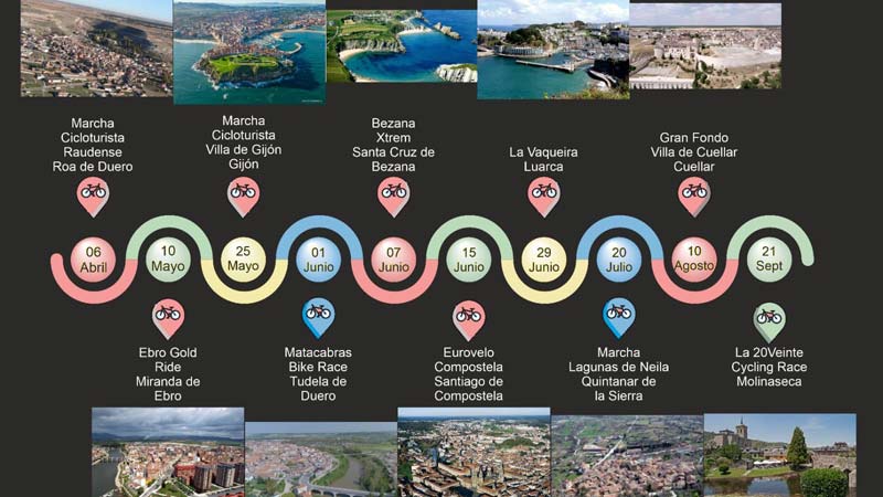 El presidente del club cuellarano detalló que entre ellas hay pruebas importantes como la Eurovelo Compostela que cuenta cada año con 2.000 inscripciones. Otras alcanzan los 500 participantes como las de Gijón y Miranda de Ebro, y algunas se estrenan este año como la de Luarca y la de Roa de Duero.