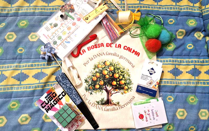 Estas bolsas, financiadas por el CD Chañe, contienen materiales e instrumentos sensoriales y lúdicos que ayudan al alumnado a identificar, comprender y canalizar sus emociones, especialmente el miedo, la tristeza o la ansiedad que puede quedar tras vivir una situación traumática como una catástrofe natural. Cada bolsa está pensada para adaptarse a las distintas etapas escolares y se entrega con una guía de uso para docentes y orientadores, facilitando su implementación directa en dinámicas de clase, rincones de calma o tutorías.