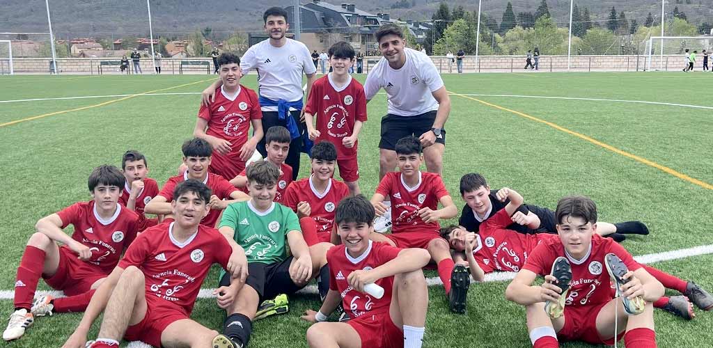 El Infantil A sí que lograba ganar por 3-5 en La Granja de San Ildefonso ante el Real Sitio en un duelo de poder a poder. Primero con un 0-2 a favor, y luego con un 3-5 final con dos tantos, uno por cada equipo, en el añadido. Alberto (2), Rubén y Andrés marcaban los goles cuellaranos.