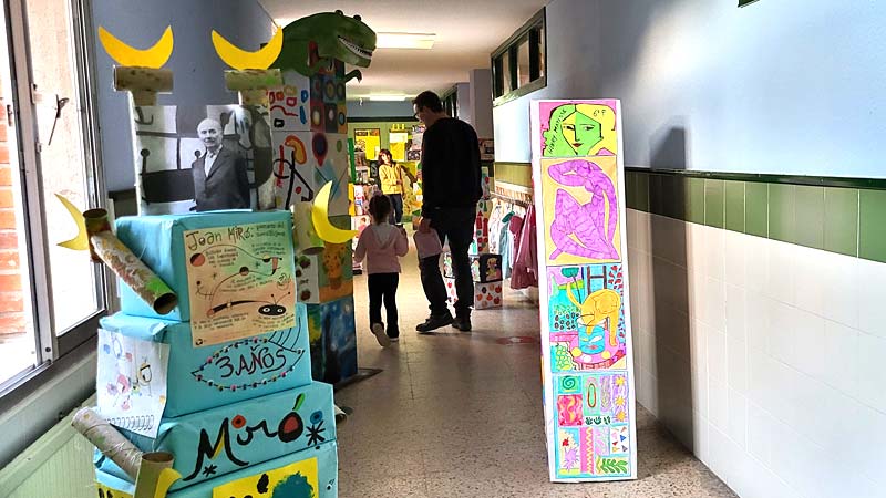 Desde el patio, pasando por el hall del centro, los pasillos de infantil y hasta la biblioteca alumnos, docentes y padres pudieron disfrutar de una tarde entre arte e incluso llevarse a casa un pedacito en forma de libro con la misma temática.