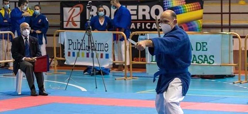El cuellarano Juan Antonio Velasco se alzó con la medalla de oro en categoría individual en kárate tradicional en el VII Campeonato de España de veteranos celebrado este fin de semana en Jaraíz de la Vera en Cáceres. Un campeonato que se celebró a puerta cerrada y sin público en las gradas, al tiempo que se respetaron todas las medidas de seguridad e higiene fijadas por la federación para todas las disciplinas a causa de la pandemia de COVID-19.