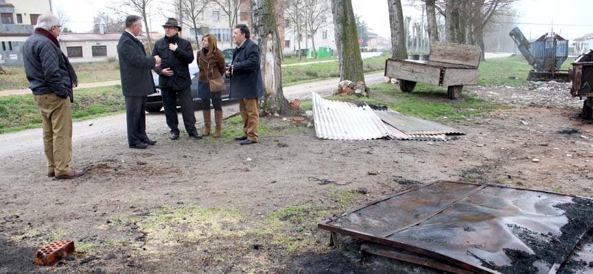 Tras la reunión mantenida, el representante de la Junta en la provincia ha visitado los restos del incendio del pajar ubicado en el núcleo urbano, el mural creado para ocultar la pintada con la que se insultaba a un vecino del municipio y una parcela en la que han depositado irregularmente residuos sin procesar.