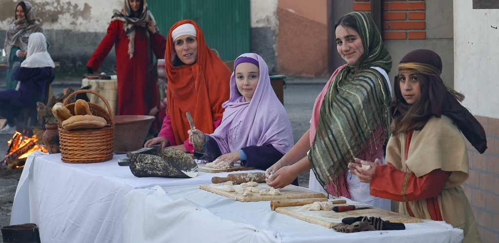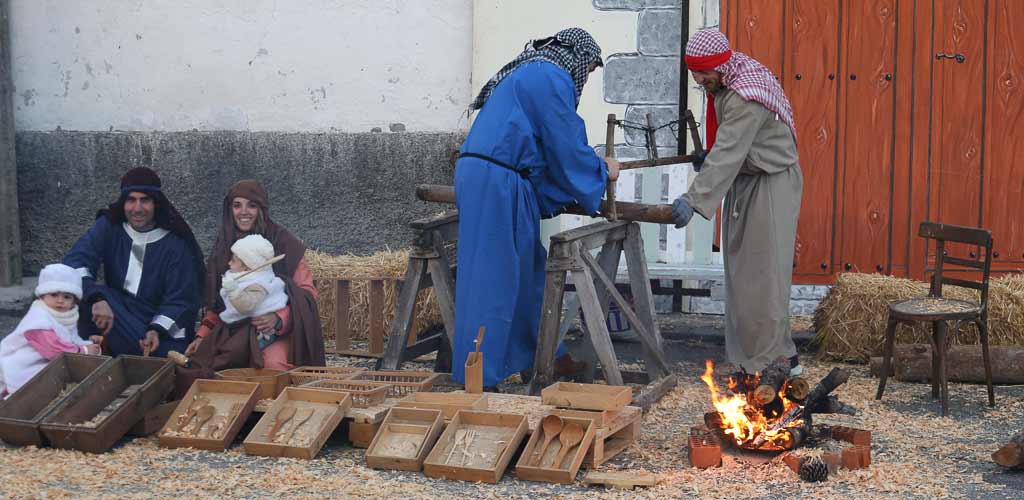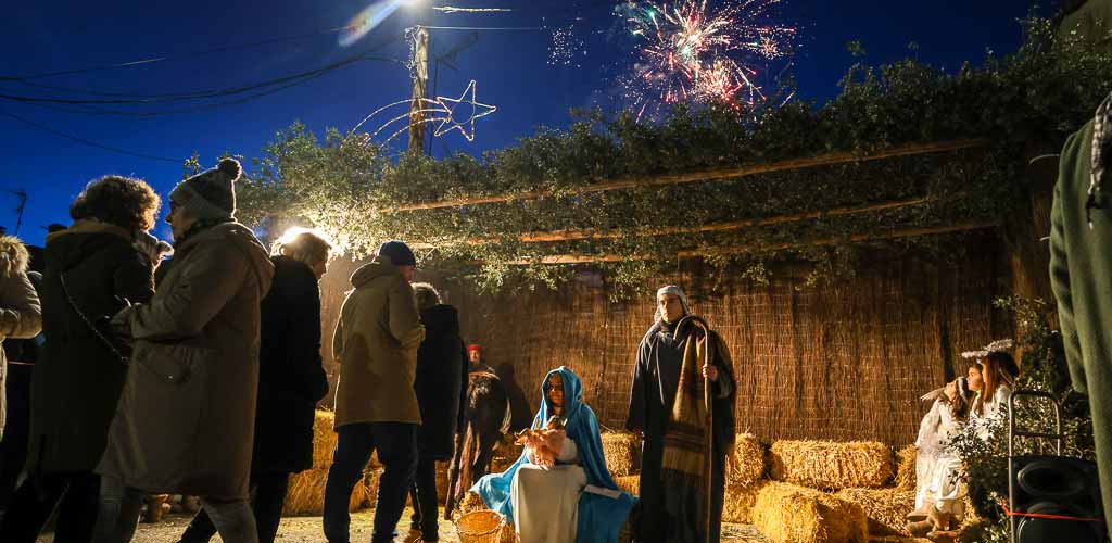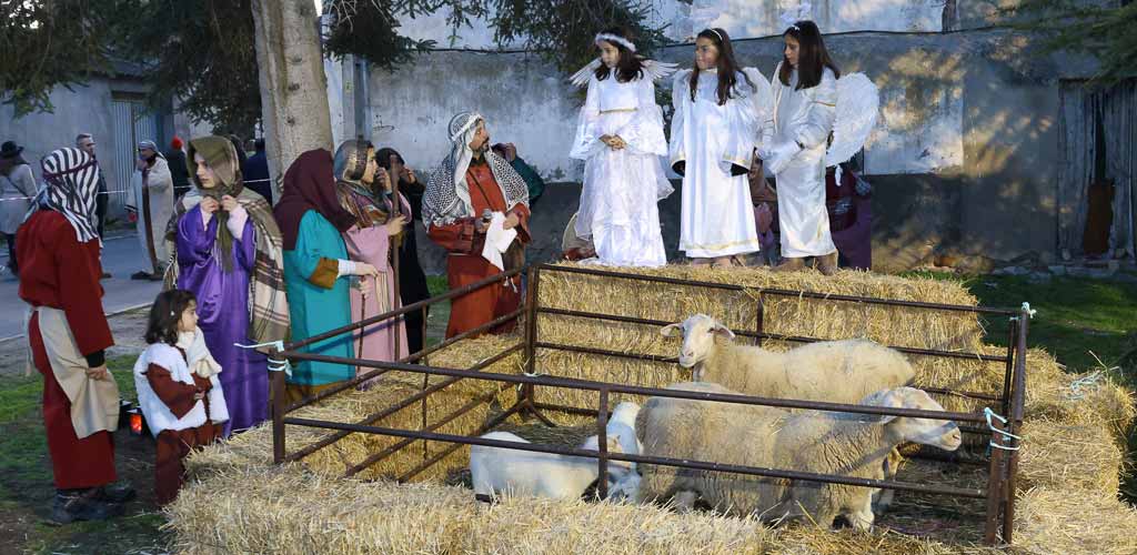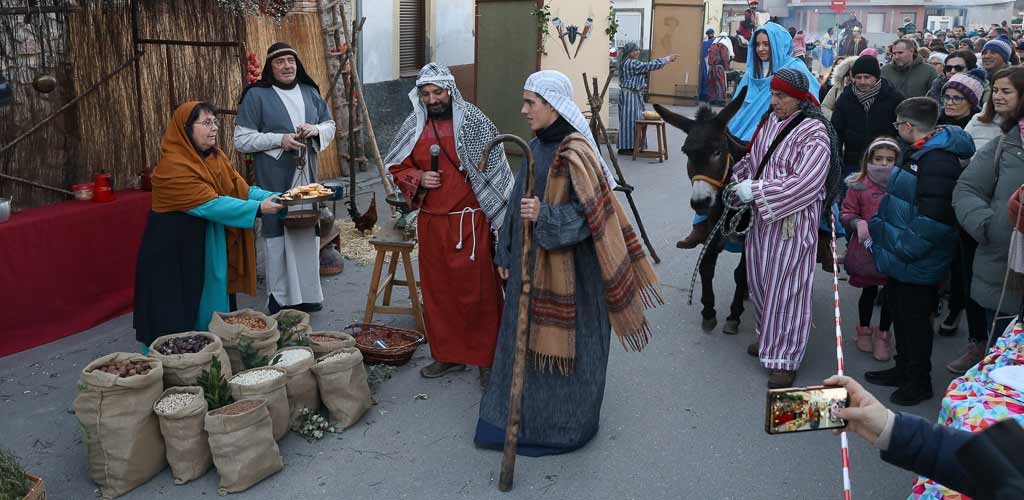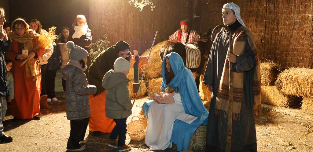 Como no encontraron dónde alojarse José y María se decantaron por resguardarse en un portal, donde nació el niño. Después, pastores y mercaderes se acercaron a adorarle, como también hicieron muchos asistentes a la recreación.