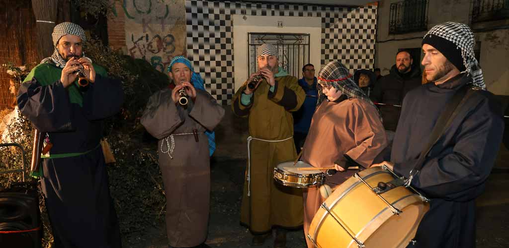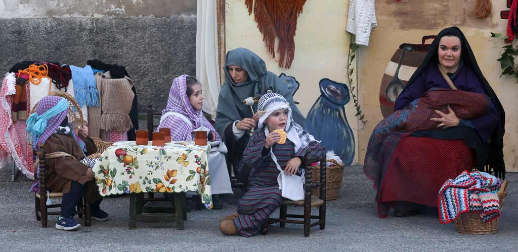 Casi dos centenares de vecinos, de todas las edades, participaron dando vida a los diferentes personajes y oficios que podían verse en el recorrido que partió del Castillo de Herodes para concluir en el portal de belén.