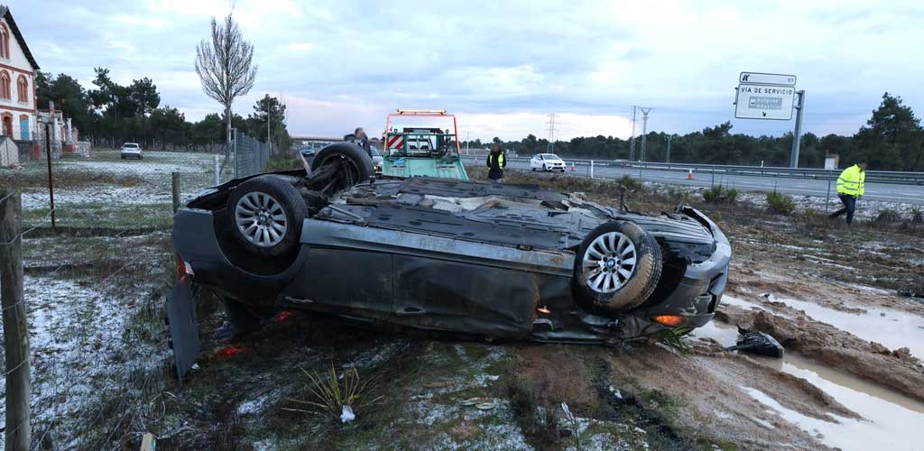 Un vehículo se ha salido de la vía y ha volcado en ese punto kilométrico en sentido Valladolid y tres personas, una mujer de 34 años y dos menores han resultado heridos.