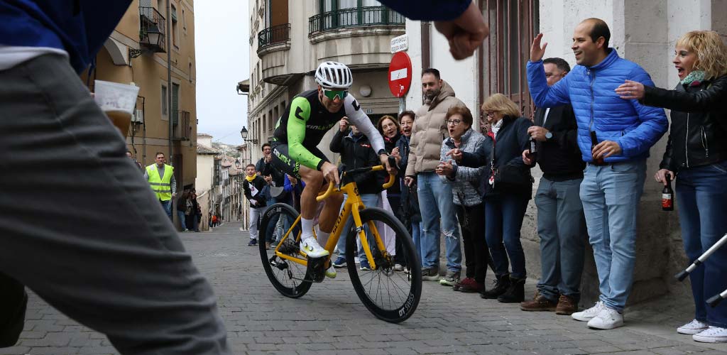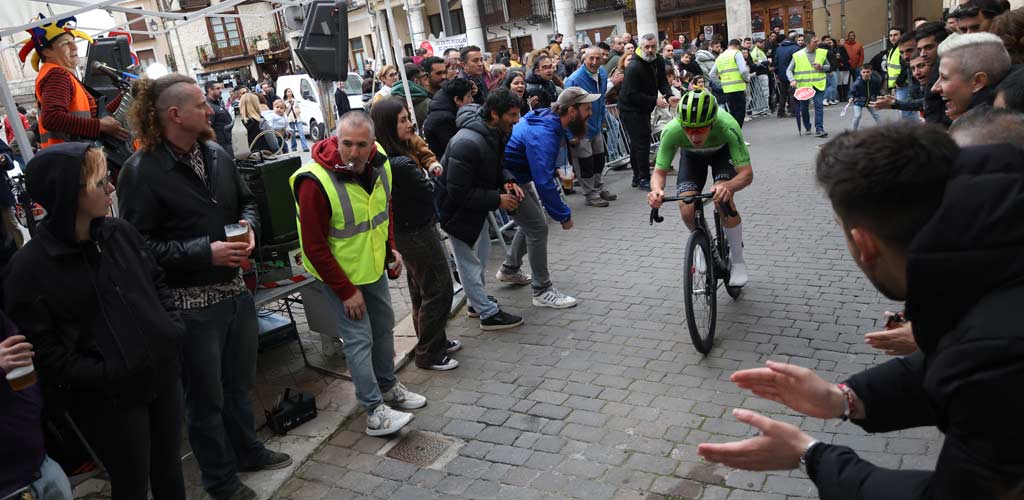 Con el maillot azul del Club Ciclista San Miguel compitieron el cogezano Marcos Herguedas, que logró el puesto 44, y el iscariense Raúl Martín que cruzó la meta en la posición 93 con la equipación de su establecimiento comercial Sinlimi-T. Ambos fueron aclamados a su paso por las calles y llevados en volandas hasta la línea de meta.
