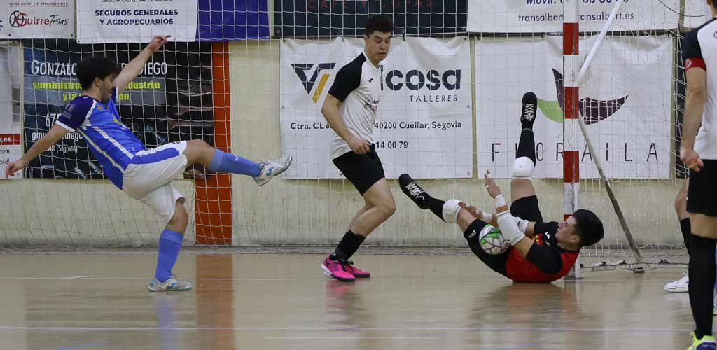 Era el minuto 8 y, en vista del marcador y del juego racinguista, el partido parecía encarrilado. Pero no fue así. Danilo tuvo que estirarse para desviar un potente lanzamiento lejano de Rodrigo ajustado al palo. El rebote lo recogía Tomás y disparaba, pero el portero racingusita detenía desde el suelo. En la siguiente jugada el propio Tomás anotaba el primer gol de los visitantes. Y un minuto después, en un grave error en la salida, un pase se quedaba corto y un atento Tomás interceptaba y marcaba a placer a portería vacía. Era el minuto 10 y el Racing Cuéllar veía como en dos minutos había perdido una ventaja de 2-0.