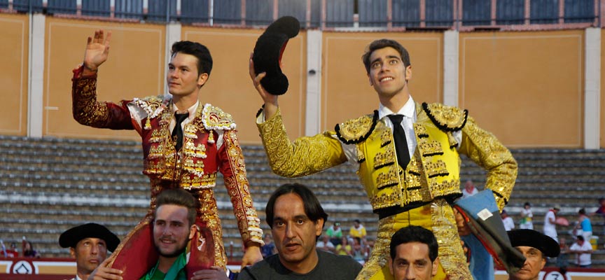Ricardo Maldonado, de pistacho y oro con cabos negros, denotó falta de oficio con su segundo, otro jabonero encastado que recibió dos varas excesivas en el caballo. después de brindar al público muleteó con la derecha tres series despegadas y dos más por la izquierda, no entregándose en ningún momento. Estocada contraria atravesada que hace guardia, un aviso y dos descabellos, resultado una oreja. Con su primero, el más flojo del encierro, se estiró por el pitón izquierdo obteniendo dos series de bella factura, logrando una oreja de su contrario.