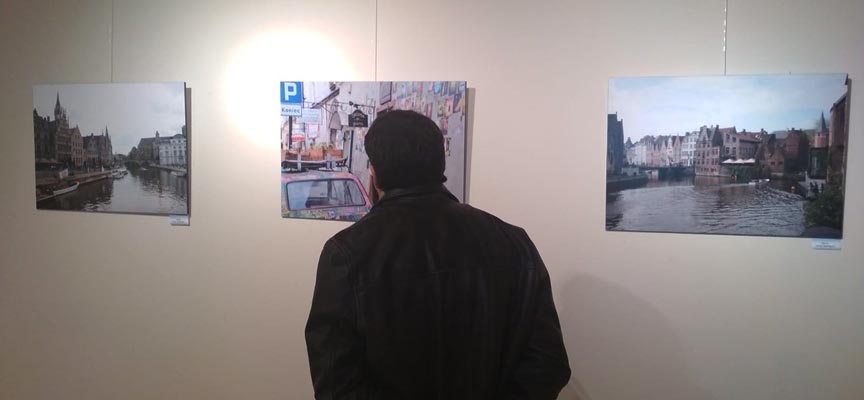 Más de una treintena de fotografías cuelgan de las paredes de la sala invitando al visitante a recorrer el mundo desde Sevilla hasta Islandia, pasando por el País Vasco, Granada, Alemania, India, Marruecos, Estados Unidos y lugares más próximos como Segovia con su alcázar y la fortaleza de la villa. No faltan tampoco motivos de la naturaleza como un paisaje de amapolas, animales como las gaviotas, flores y calles de diferentes ciudades, aunque destacan los monumentos.