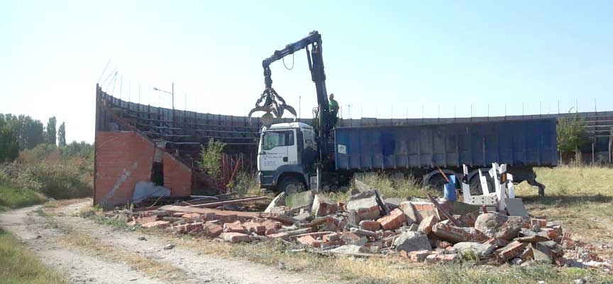 La alcaldesa, Patricia Gozalo, ha informado de que hoy ha comenzado la retirada de las estructuras metálicas del coso, que se reforzaron hace unos 30 años con hormigón para hacer fija la plaza y se tabicó bajo las gradas para darlas solidez y resistencia. Así ha apuntado que la plaza no solo se retira por su antigüedad y mal estado, sino también porque no cumple con la normativa actual al carecer de callejón.