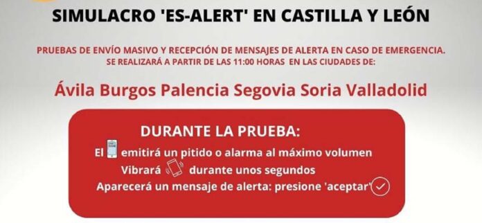 La Junta de Castilla y León, a través de la Agencia de Protección Civil y Emergencias, ensayará de nuevo el miércoles 16 de noviembre el sistema de alertas “ES-Alert” que permite el envío masivo de mensajes a la población en caso de gran emergencia o catástrofe, y que está implantando la Dirección General de Protección Civil y Emergencias del Ministerio del Interior.