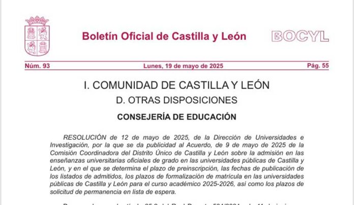 La Comisión Coordinadora del Distrito Único de Castilla y León, de la que forma parte la Consejería de Educación junto con las universidades públicas Burgos, León, Salamanca y Valladolid, ha establecido el plazo de preinscripción del 4 de junio al 4 de julio.