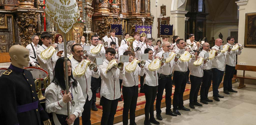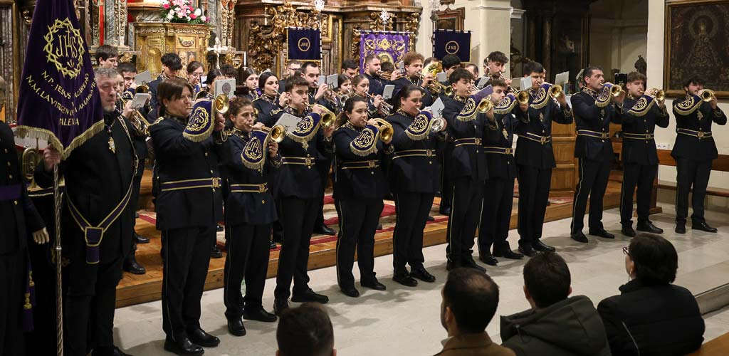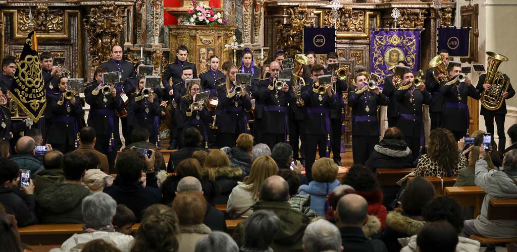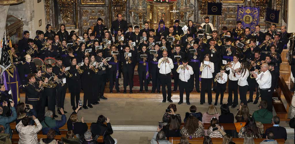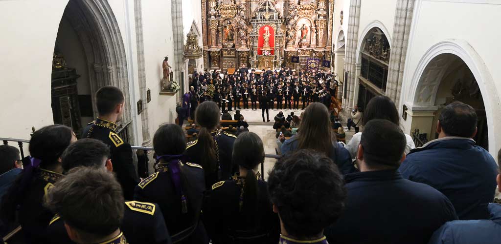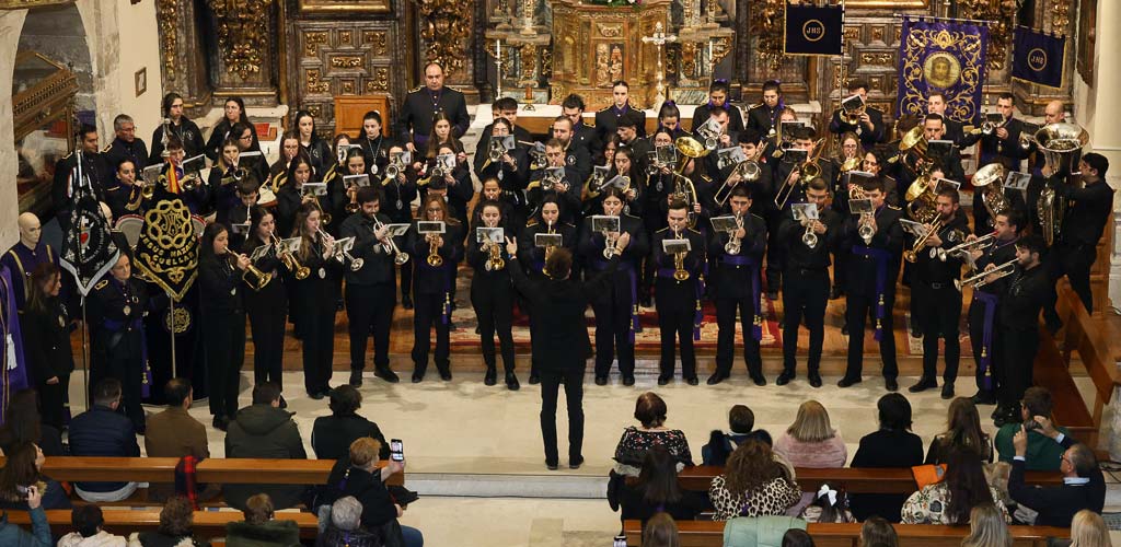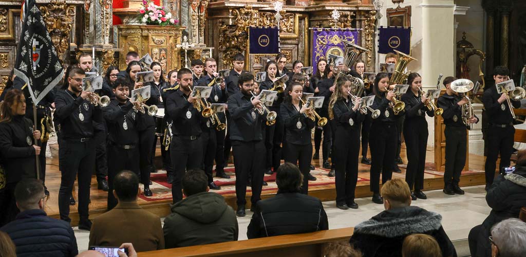 Cinco bandas, incluyendo la homenajeada, pasaron por el altar mayor del templo para interpretar diferentes piezas, todas ellas propias de la Semana Santa.