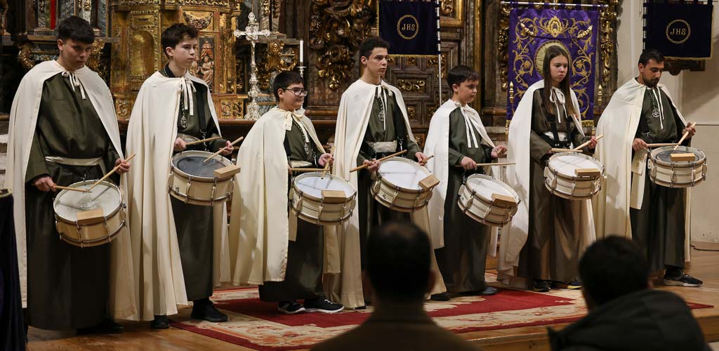 La primera en actuar fue la Banda de Tambores de la Cofradía de la Dolorosa Virgen de los Cuchillos que interpretó variaciones de percusión. Una formación creada en 2008 con instrumentos de percusión y principalmente integrada por jóvenes. En 2013 se amplió con siete cornetas alcanzando los 23 miembros, pero la pandemia llevó la banda a la desaparición y fue en 2023 cuando la banda volvió a constituirse y volvió a procesionar en 2024. En la actualidad la forman ocho integrantes.