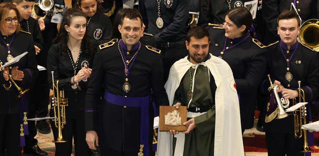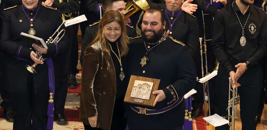 La última en actuar en solitario fue la Banda de Cornetas y Tambores de la Cofradía de Nuestro Padre Jesús Nazareno de la villa. Sanz tuvo un recuerdo para los precursores de la banda “Luis Martín ‘Kubala’ y otras personas que con tesón y una pasión inquebrantable hicieron posible que hoy estemos aquí“. Del mismo modo mencionó “a quienes pusieron aquellos primeros cimientos a esta banda. A quienes no se conformaron con el silencio y soñaron con llenar de música nuestras calles”, así se refirió a Luis Izquierdo y Carmina García “cuya entrega y dedicación fueron claves en aquellos primeros años”.