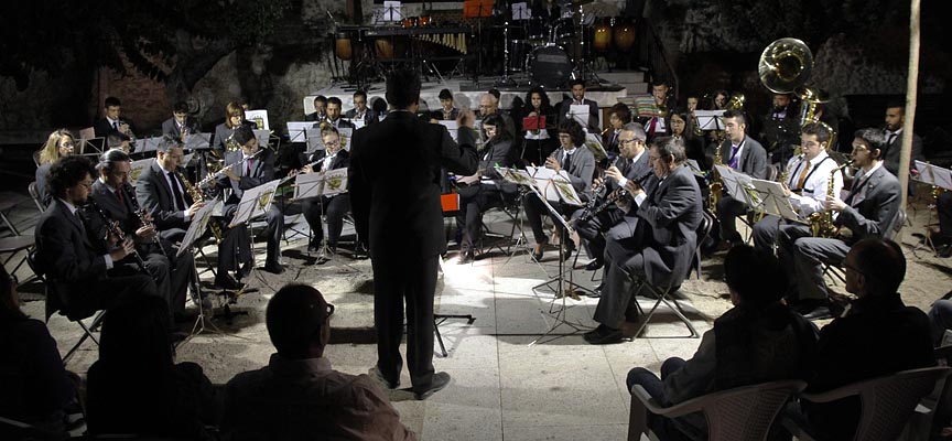 A pesar del frio el recinto se llenó de público para disfrutar de los diferentes ritmos que la banda interpretó. En su repertorio incluyó temas como Supertramp, Brasiliana, el pasodoble Gallito, The Blues Factory, Churumbelerías o A Klezmer Karnival.