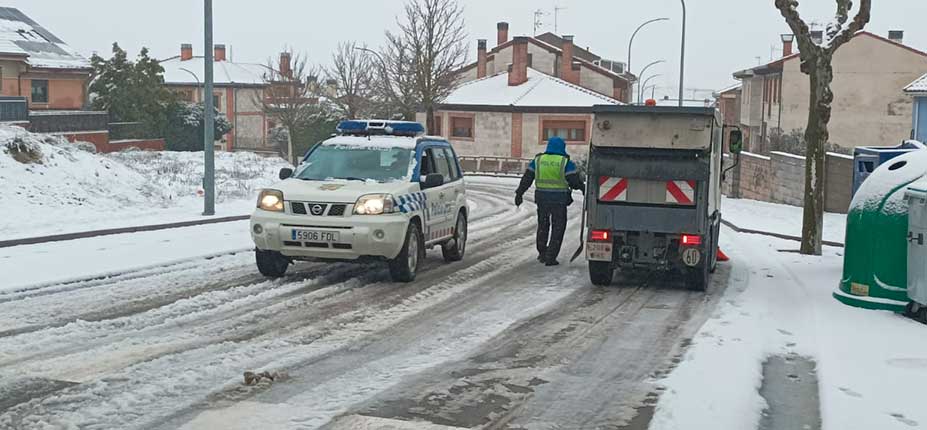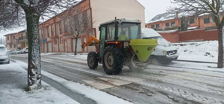 Los servicios municipales están trabajando con los tractores esparciendo sal y también los están haciendo las cuadrillas a pie que al mismo tiempo van retirando la nieve. El reparto de sal se centra en las calles con situación más complicada: Puerto Rico, Valdihuertos y Cubo.
