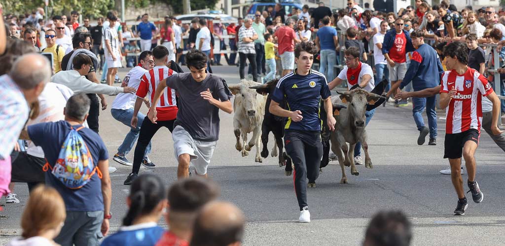 El baile de rueda ha precedido a esa suelta, en una nueva iniciativa del Ayuntamiento para completar la programación. Así, esa rueda amenizada por el grupo de dulzainas Castilviejo ha comenzado en los Paseos de San Francisco y ha continuado hasta la plaza de toros, desde donde a las 12.00 horas se ha producido la suelta de reses. Las talanqueras han vuelto a llenarse en ese tramo del recorrido urbano para disfrutar de esa suelta a la que ha seguido una probadilla.