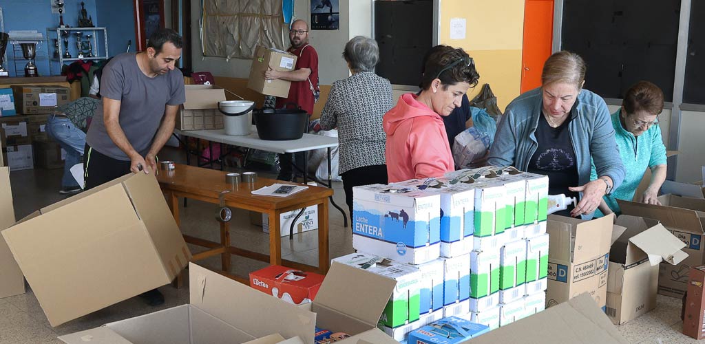 Los productos que se recogen son: alimentos no perecederos (conservas, embutido envasado, galletas…); agua y leche, pañales, leche en polvo, potitos, productos de higiene (compresas, tampones, papel higiénico, toallitas, gel…); material sanitario (vendas, cristalmina, gasas, medicamentos…); productos de limpieza (palas, cubos, lejía, amoniaco, cepillos, fregonas, botas de goma…); productos para animales (comida, correas…) y mantas y toallas.