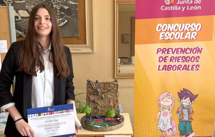 La cuellarana Violeta Arranz recibió ayer el diploma que la acredita como ganadora del tercer premio del XXI Concurso Escolar de Prevención de Riesgos Laborales 2025-26 en la categoría de Bachillerato y Formación Profesional de grado medio. El certamen ha sido organizado por la Consejería de Industria, Comercio y Empleo en colaboración con la Consejería de Educación de la Junta de Castilla y León.