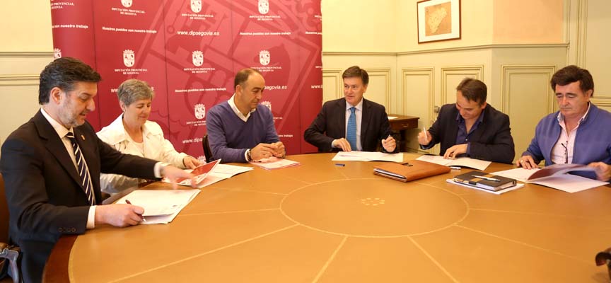 El Presidente de la Diputación, Francisco Vázquez, acompañado del Diputado del Área de Asuntos Sociales y Deportes, Miguel Ángel de Vicente, rubricó el acuerdo de subvención con los alcaldes del Real Sitio de San Ildefonso, José Luis Vázquez, de Prádena, Mª Carmen Rey-Pastor, de Cuéllar, Jesús García y de Cantalejo, Máximo San Macario como máximos representantes de los municipios en los que se ubican las instalaciones que sirven de sede a los cuatro Centros Agrupados de Acción Social de la provincia.