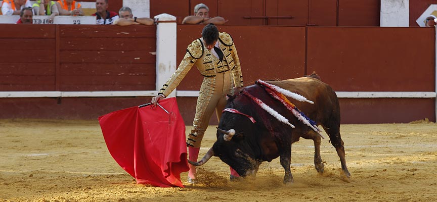 Tras una cornada, el torero se levanta con el traje de luces ensangrentado y dispuesto a alcanzar la ansiada gloria sin más visión que la de una espada entre los ojos.