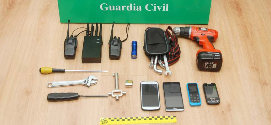 Seguidamente se localizaron herramientas usadas presuntamente en el robo, como, guantes, destornilladores, linternas, pasamontañas, una parte de la cerradura del establecimiento y dos trasmisores, además del vehículo en el que llegaron a Cantalejo para cometer el robo.
