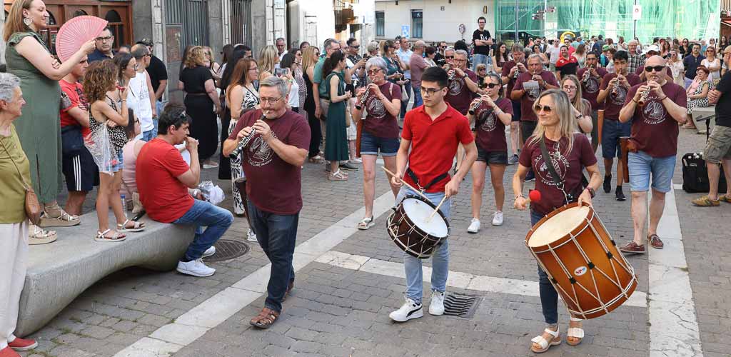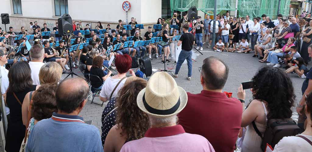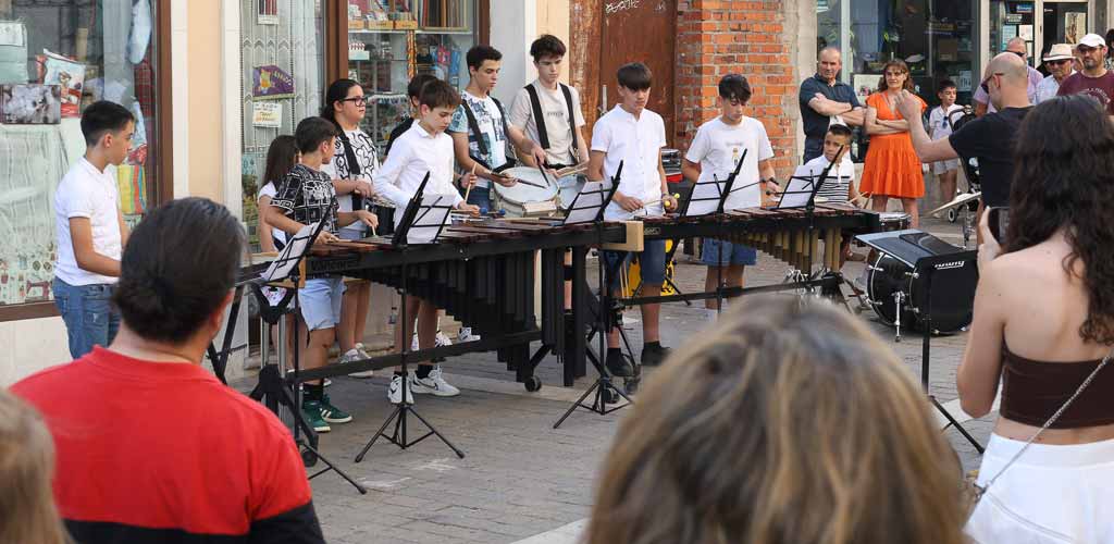 Al concluir las actuaciones, los dulzaineros guiaron a los asistentes hacia la plaza de los Coches donde los alumnos de percusión hicieron sonar sus instrumentos. La siguiente parada se situó en la calle Parras donde sonaron las piezas de los alumnos de flauta, violín y clarinete.