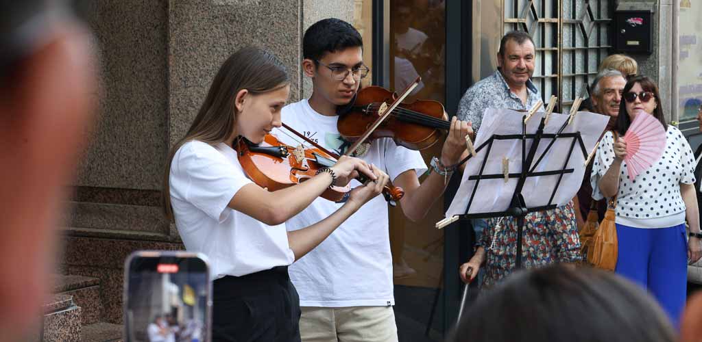 La actividad, en la que los alumnos dan a conocer lo aprendido durante el curso, comenzó en la calle Ávila con los sonidos de las dulzainas que condujeron al público hasta las puertas de la escuela en la calle Chorretones. Allí actuaron los alumnos de música y movimiento, piano, música de cámara, guitarra y canto.