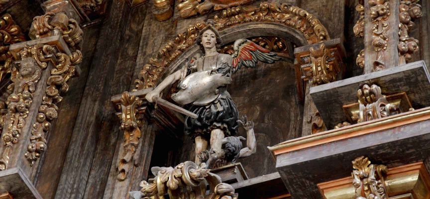 Imagen de san Miguel en el retablo de la iglesia de la iglesia a la que da nombre. | Foto: Gabriel Gómez |