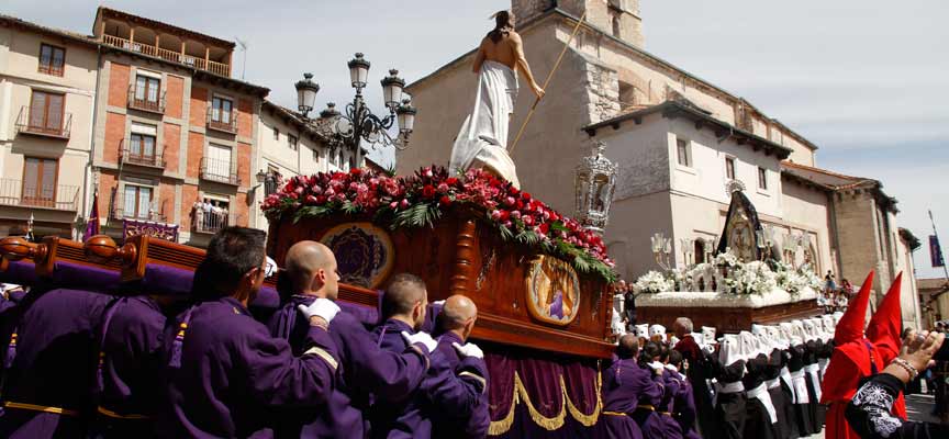 La imagen de el Resucitado partía desde la iglesia de El Salvador a las 11.00 horas, portada sobre el trono del Nazareno y acompañada por sus capuchones y banda de cornetas y tambores. La imagen se ha dirigido por las calles Arévalo, Segovia, Trinidad y Santa Marina a la Plaza Mayor.