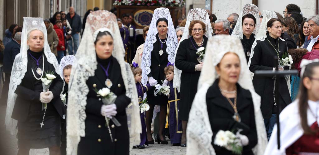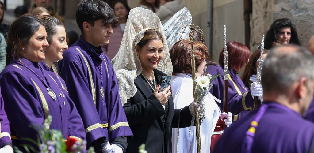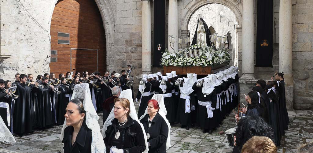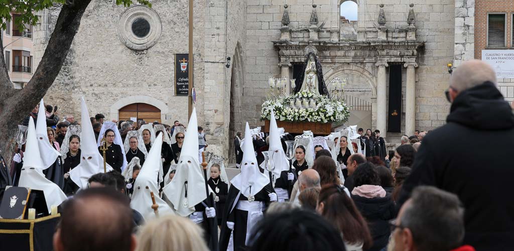 La virgen de La Soledad ha regresado después a su sede en la iglesia de San Francisco procesionando con sus cofrades y manolas, descendiendo por la calle San Pedro y continuando por la calle Parras hasta llegar al templo.