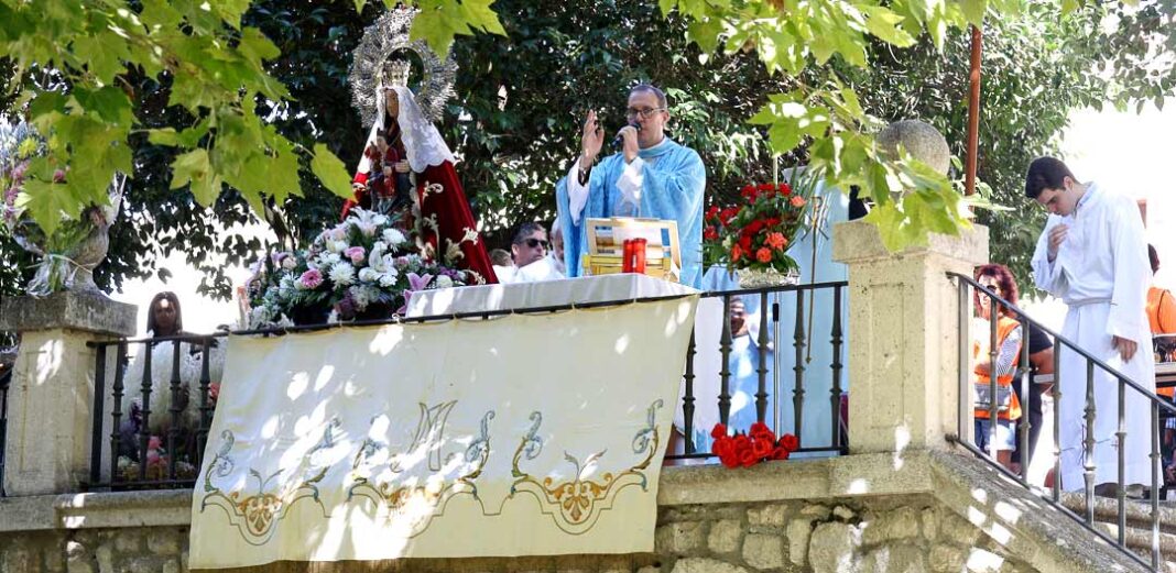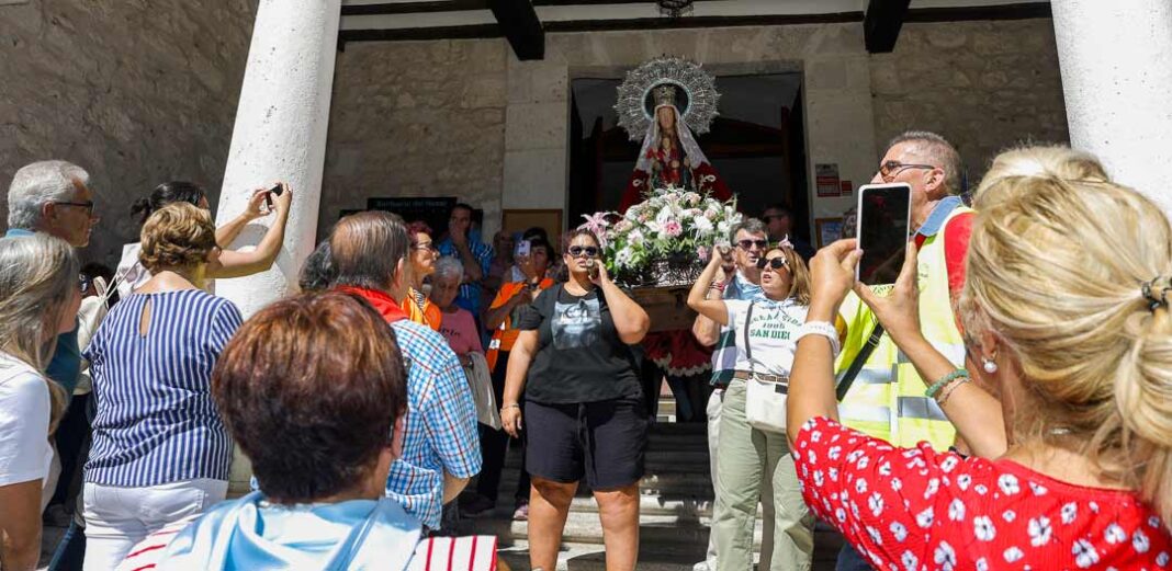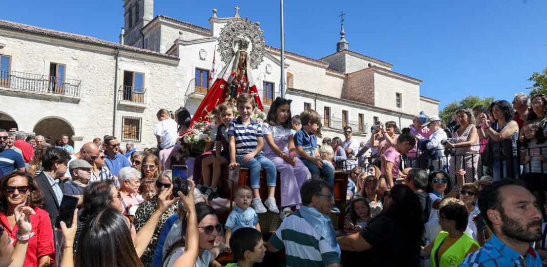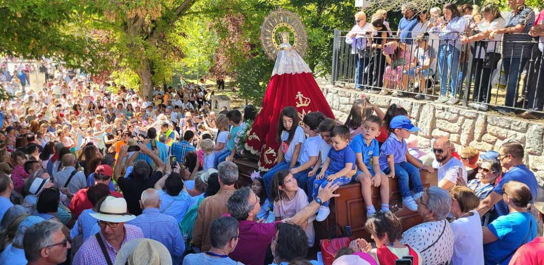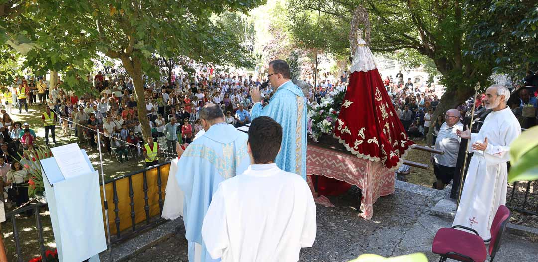 Centenares de personas se han dado cita en el recinto y sus aledaños para seguir el desarrollo de la eucaristía que ha finalizado con vivas a la Virgen de El Henar y a la Morenita de Castilla. La imagen ha sido entonces colocada sobre su carroza, situada junto a la escalinata de acceso al santuario, para desde allí iniciar la procesión al son de la dulzaina y el tamboril del Grupo A por ellos.