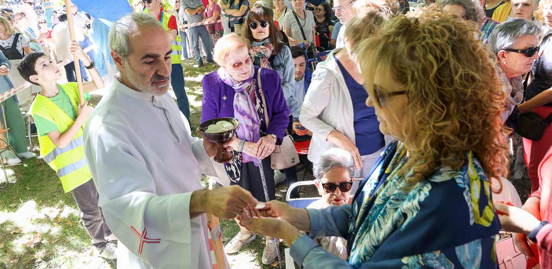 El padre Javier de María, Carmelita Descalzo natural de Almodóvar del Campo en Ciudad Real, ha sido el encargado de oficiar la misa en la pradera junto al religioso agustino Ismael Arevalillo, natural de Lovingos.