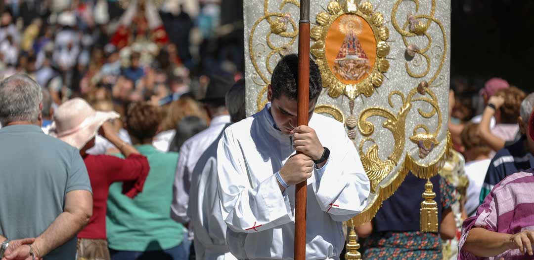 Los danzantes han acompañado a la imagen, que vestía su manto de terciopelo rojo y apliques dorados, durante todo el recorrido dedicándole sus danzas que han realizado de cara a ella. Diferente ha sido este año el paso de la procesión por la Fuente del Cirio, donde se apareció al pastorcillo, ya que allí habitualmente es donde se le lanzan las avellanas típicas de esta festividad. El cambio de ubicación de los puestos, a un espacio por el que no pasa el recorrido ha hecho que las avellanas se lanzaran al comienzo del recorrido.