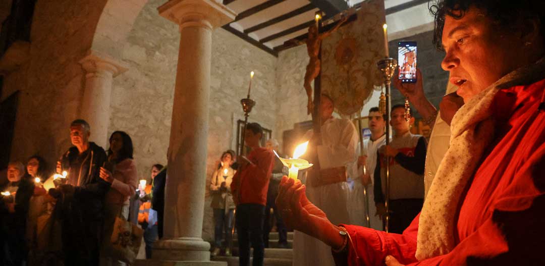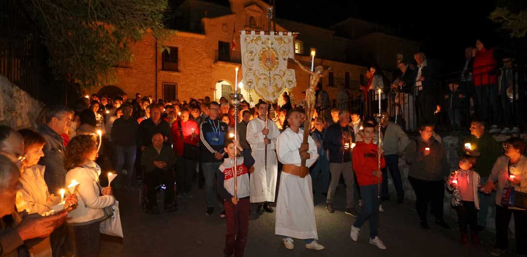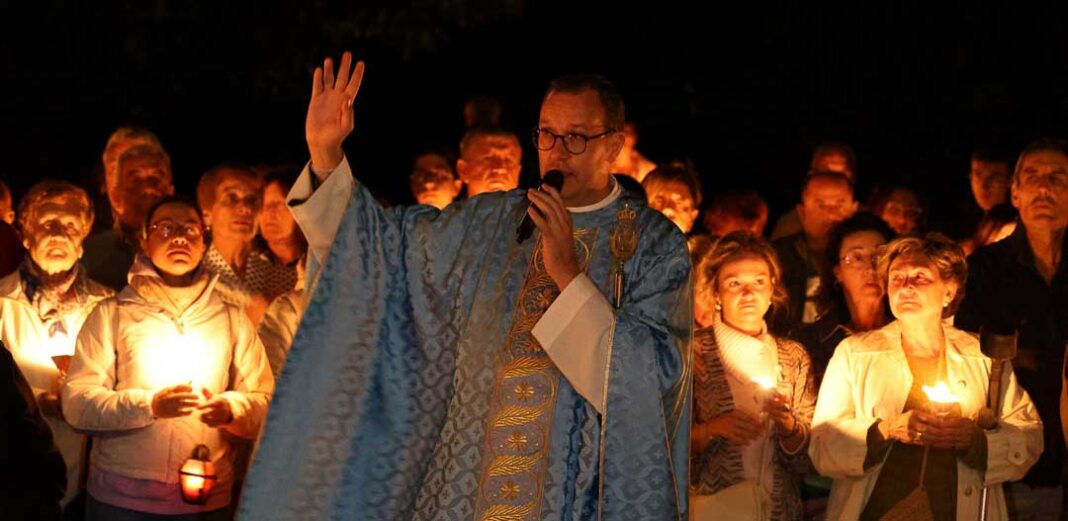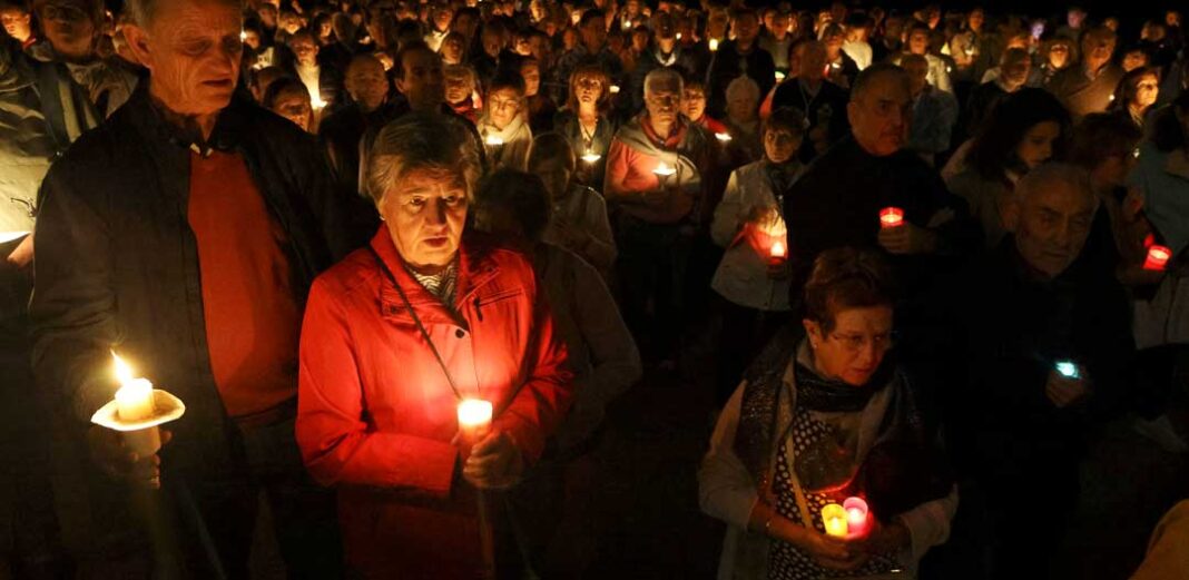 En la tarde del sábado centenares de personas participaron en el Rosario de Antorchas que cada año precede a la romería y rodea con velas la pradera del santuario.