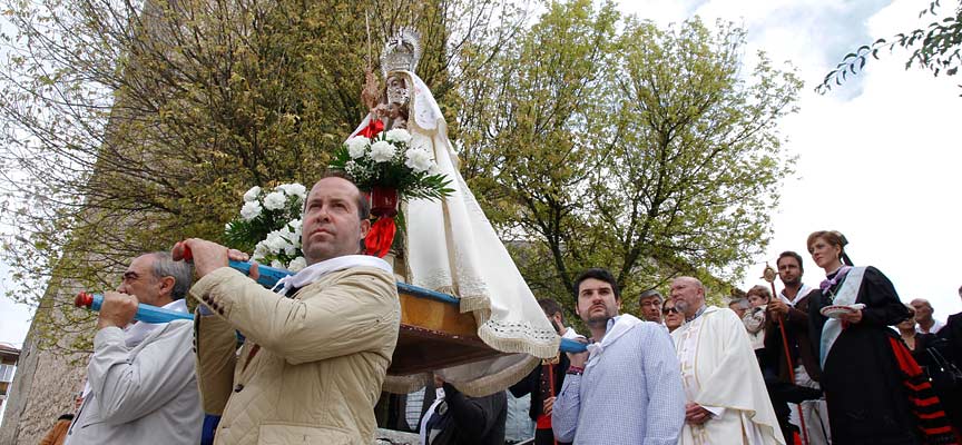 El barrio de El Salvador vive hoy el día grande de sus fiestas en honor a la Virgen de La Palma. La misa y la procesión con la imagen de la virgen han sido los actos principales que se han desarrollado esta mañana. El repique de campanas marcaba el inicio de la procesión que ha estado acompañada por el sonido de la dulzaina y el tamboril del grupo Tierra Antigua y un buen número de danzantes.