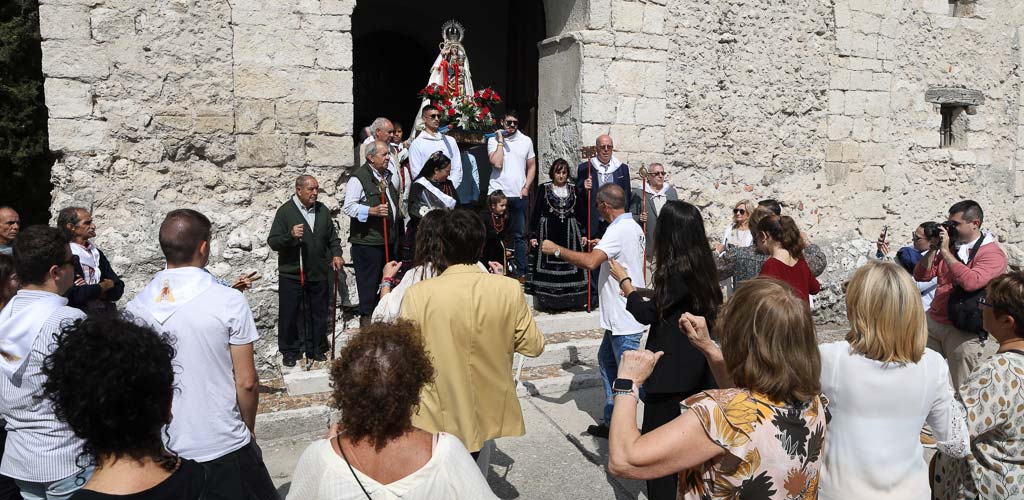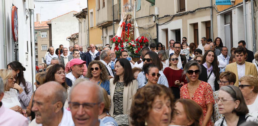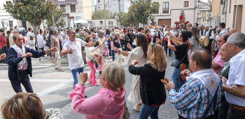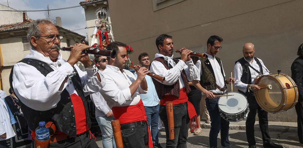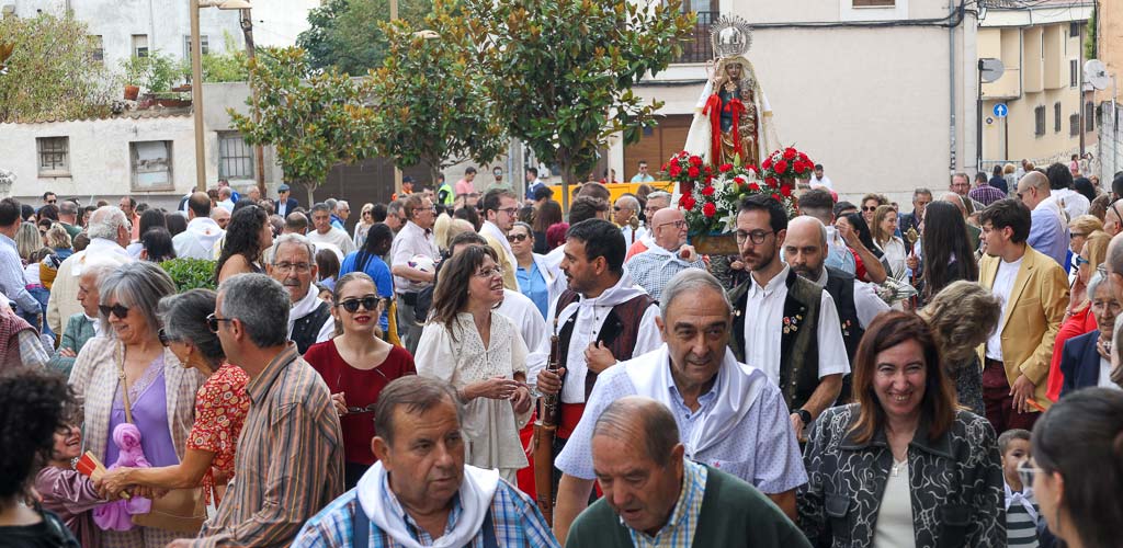 La virgen ha estado acompañada por el sacerdote, el mayordomo, Félix Fuentes, y la reina de las fiestas, Montse Mateos. El sonido de la dulzaina y el tamboril del grupo Collara ha acompañado a la imagen y ha permitido que los danzantes disfrutaran.